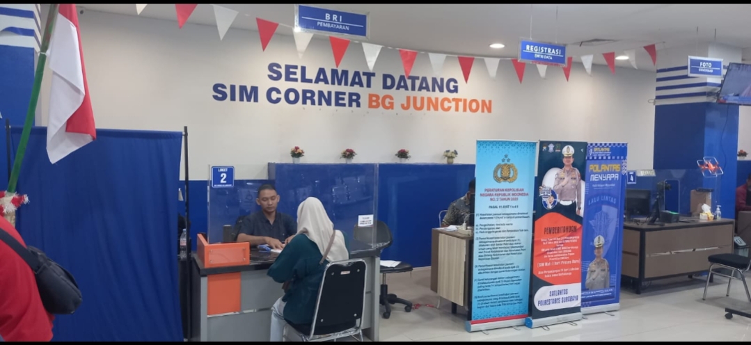 Serta memberikan pelayanan publik yang profesional, transparan, dan akuntabel melalui layanan perpanjangan SIM yang mudah di pusat perbelanjaan seperti BG Junction untuk mendekatkan pelayanan kepada masyarakat, dengan motto “Kepuasan Pemohon SIM adalah Kebanggaan Kami”.