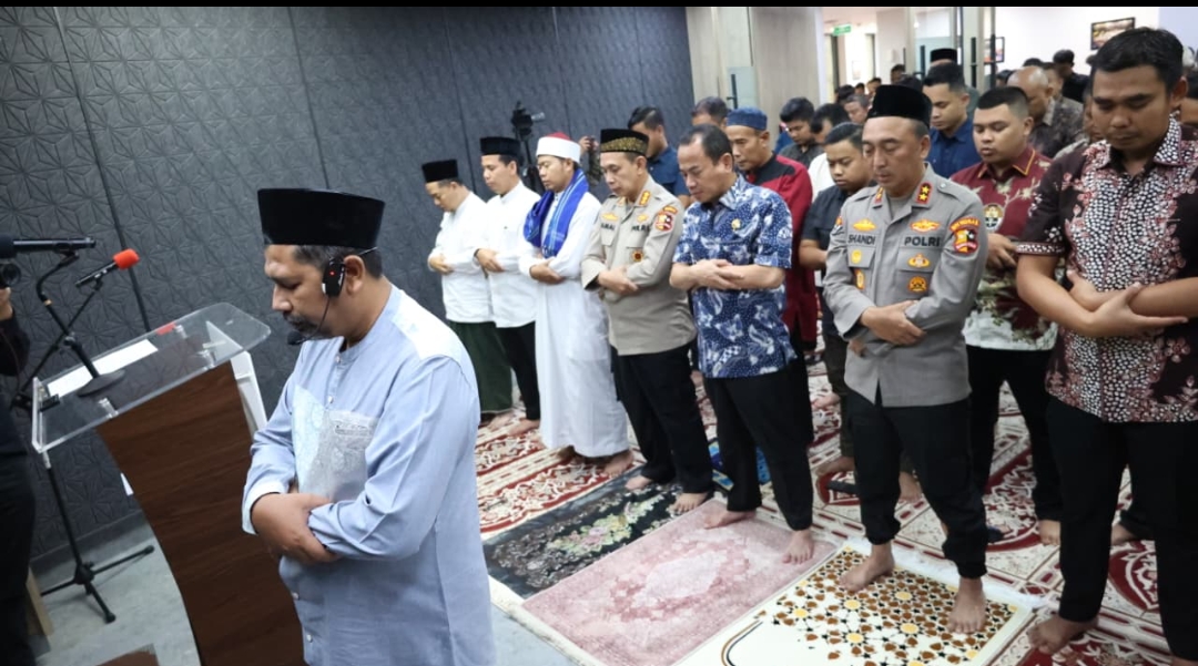Shalat gaib dilaksanakan di Masjid Divhumas Polri, lantai 3 Gedung Divhumas Mabes Polri, Jakarta, Jumat (29/8/2025), seusai pelaksanaan shalat Jumat. Ibadah tersebut dipimpin oleh Ustad Ali Khalidin.