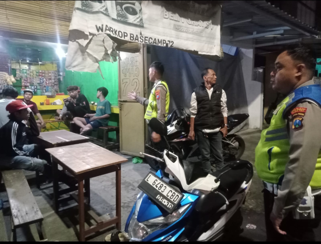 Selanjutnya, tim patroli menyasar kawasan Jalan Tenggumung Karya Lor. Di lokasi tersebut, petugas memberikan imbauan kamtibmas kepada masyarakat dan para remaja yang masih berkumpul di sejumlah warung kopi.