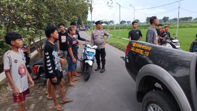 Polsek Ringinrejo Polres Kediri turun langsung membubarkan aksi balap liar di Jalan Kali Mambeg, Minggu (18/1/2026).