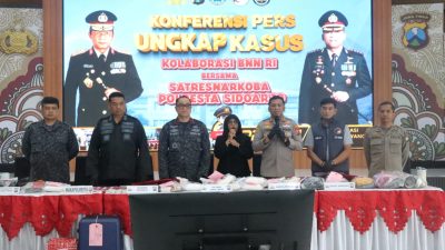 SIDOARJO – Satresnarkoba Polresta Sidoarjo Polda Jatim bersama BNNP Jawa Timur, berhasil mengungkap upaya penyelundupan narkotika jenis sabu seberat 8,2 kilogram dan 10 butir pil ekstasi.