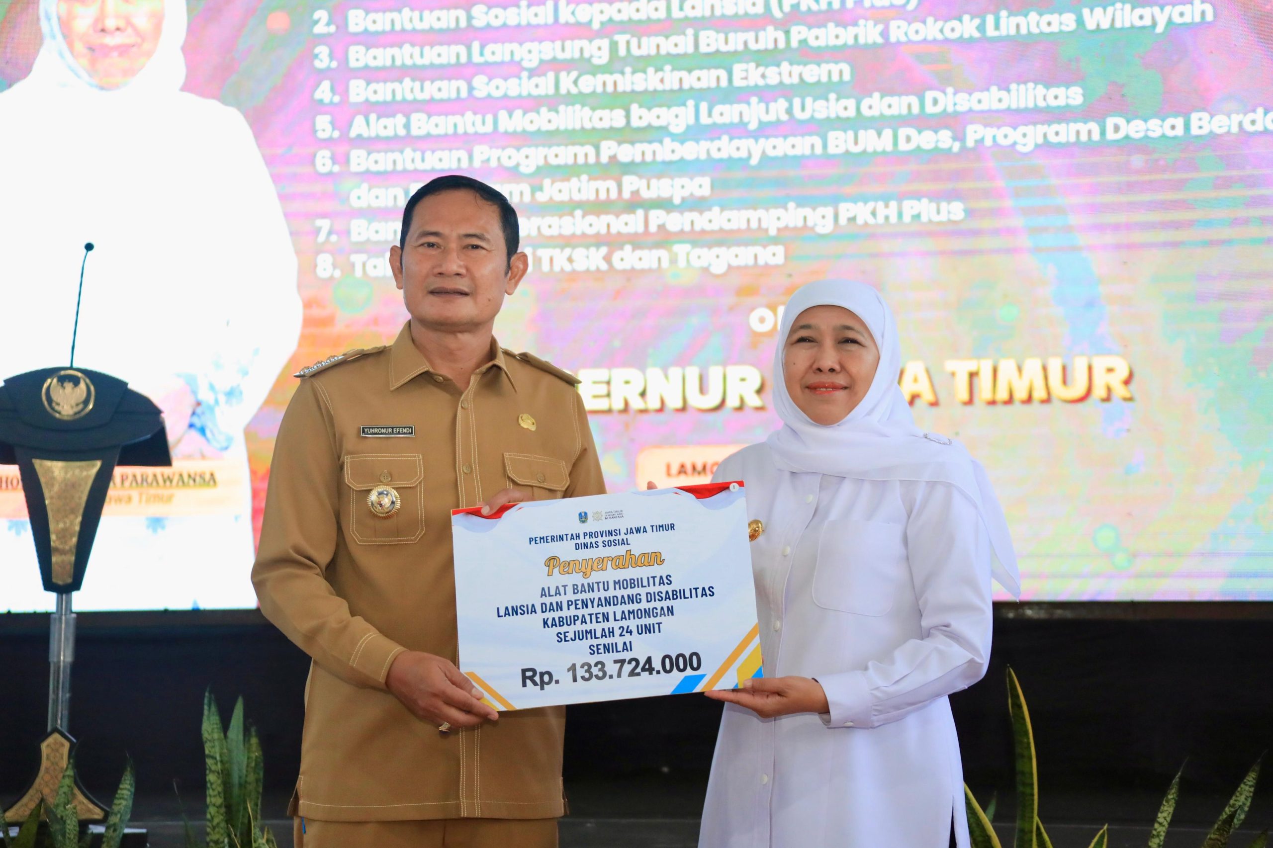 Gubernur Khofifah mengatakan, Lamongan merupakan daerah ke-16 yang memperoleh penyaluran bansos tahun ini. Ia menyebut, gencarnya penyaluran berbagai bantuan ini  diharapkan dapat mendongkrak ekonomi masyarakat di Jatim.