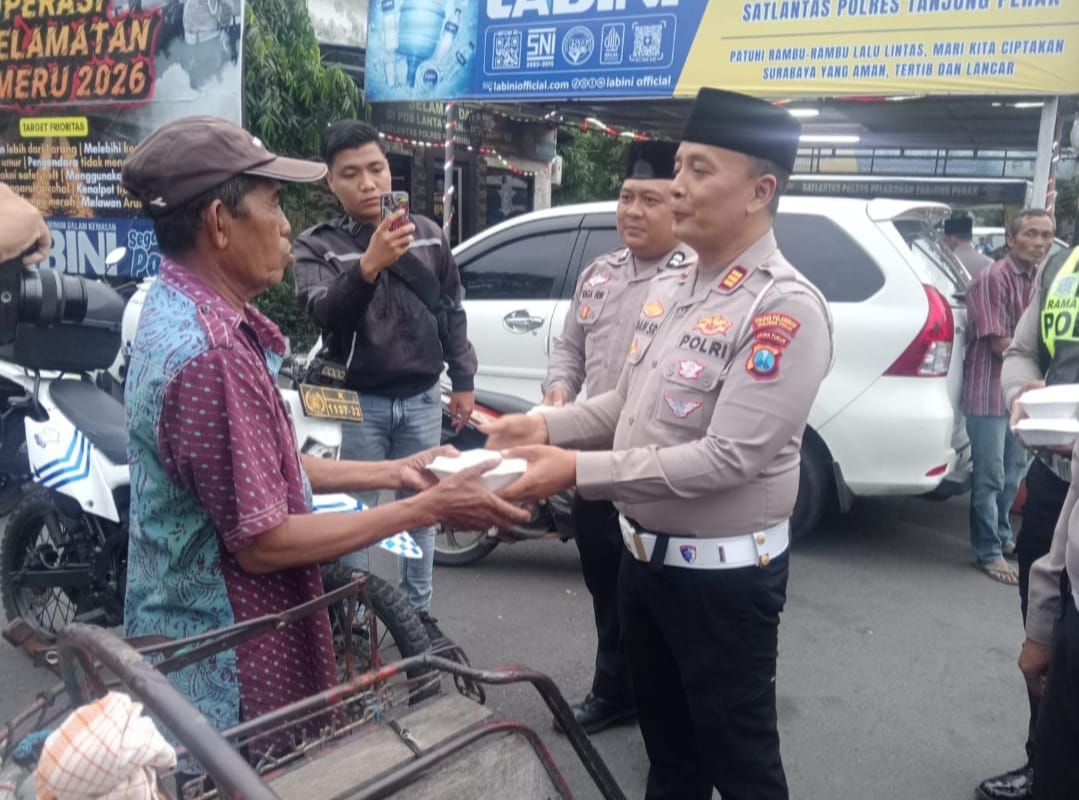 Surabaya – Dalam semangat berbagi dan kepedulian di bulan suci Ramadan, Satuan Lalu Lintas (Satlantas) Polres Pelabuhan Tanjung Perak menggelar kegiatan pembagian takjil kepada masyarakat. Kegiatan yang mengusung tema “Berbagi Takjil untuk Sesama” ini menjadi wujud nyata kehadiran Polri di tengah masyarakat, tidak hanya dalam menjaga ketertiban lalu lintas, tetapi juga menebar kebaikan.