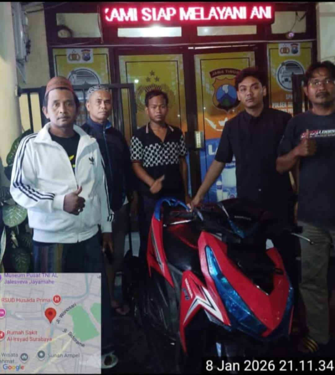 Surabaya – Kasus pencurian sepeda motor yang terjadi di wilayah hukum Polsek Semampir berakhir dengan pencabutan laporan oleh korban setelah kendaraan miliknya berhasil ditemukan dan tidak menimbulkan kerugian.