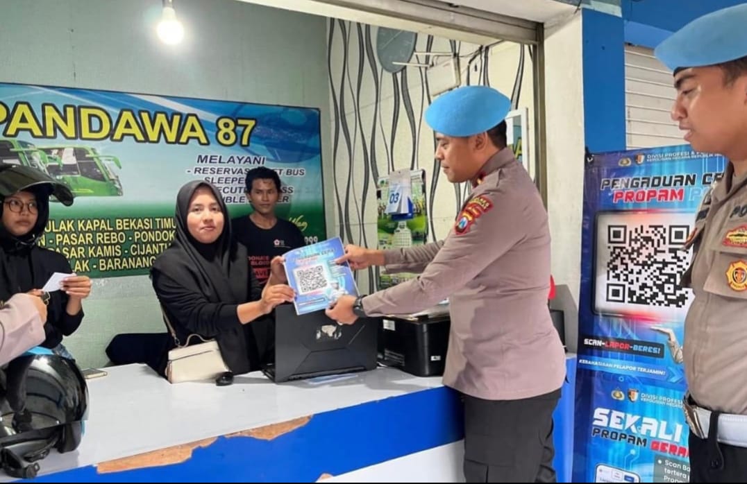 Bangkalan – Komitmen terciptanya institusi yang semakin profesional, bersih, dan bertanggung jawab di tengah masyarakat, Sipropam Polres Bangkalan menggelar kegiatan Sosialisasi QR Code Dumas Online Divpropam Polri di Terminal Bangkalan.